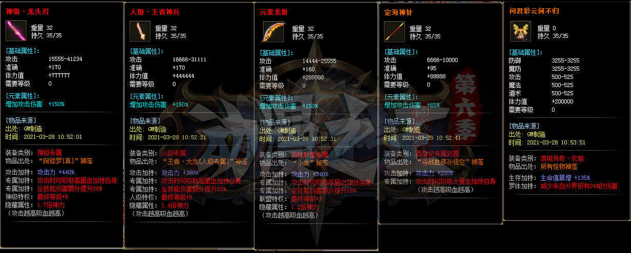 本服套装70套 散件专属3000多套 各种神装眼花缭乱 长期探索